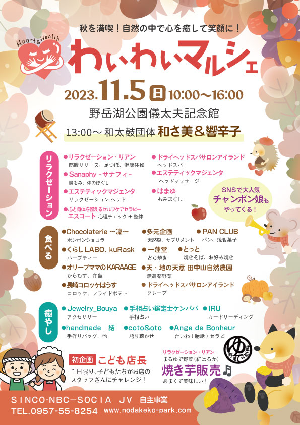 秋を満喫!自然の中で心を癒して笑顔に!「わいわいマルシェ」の開催です!